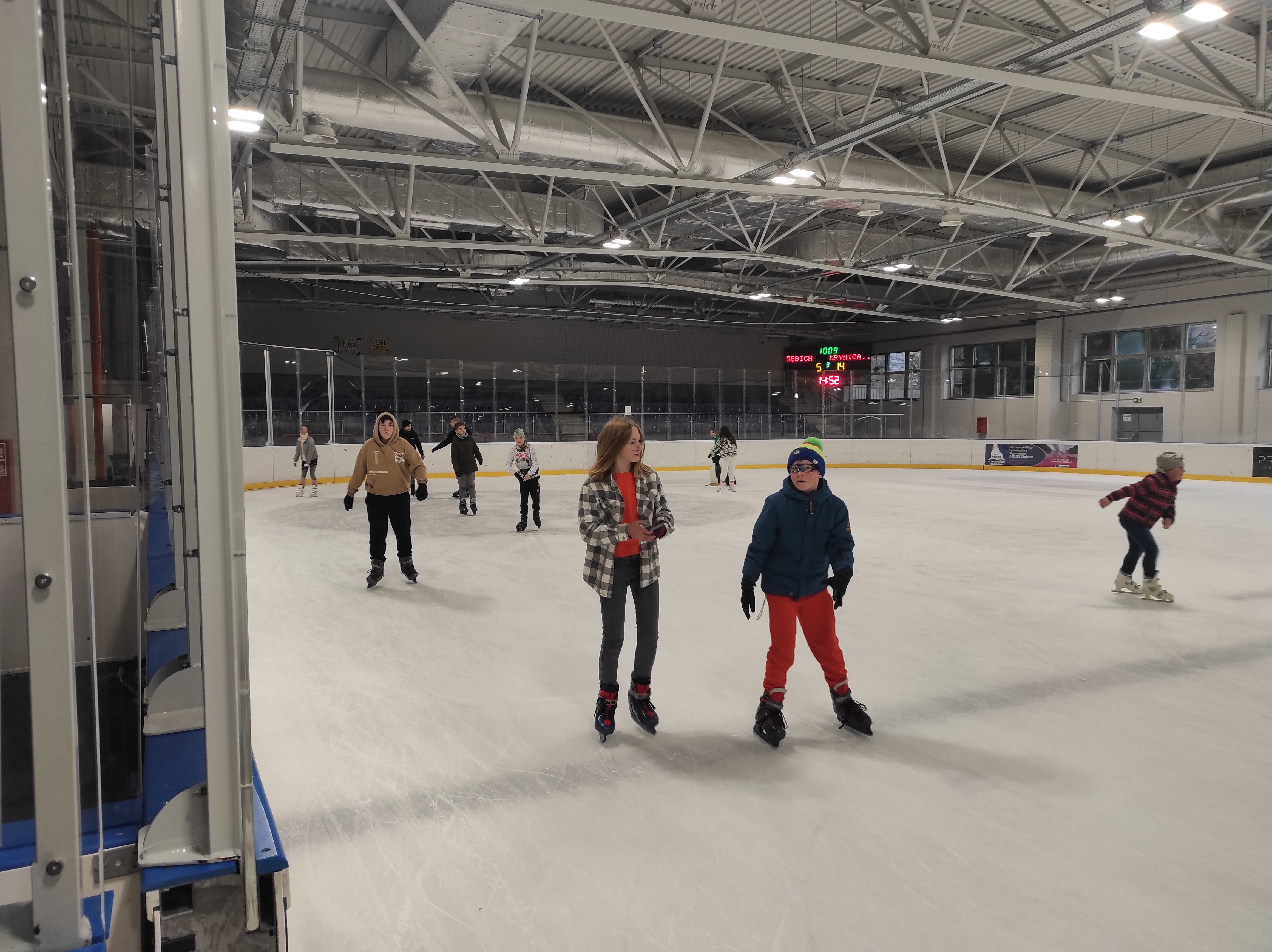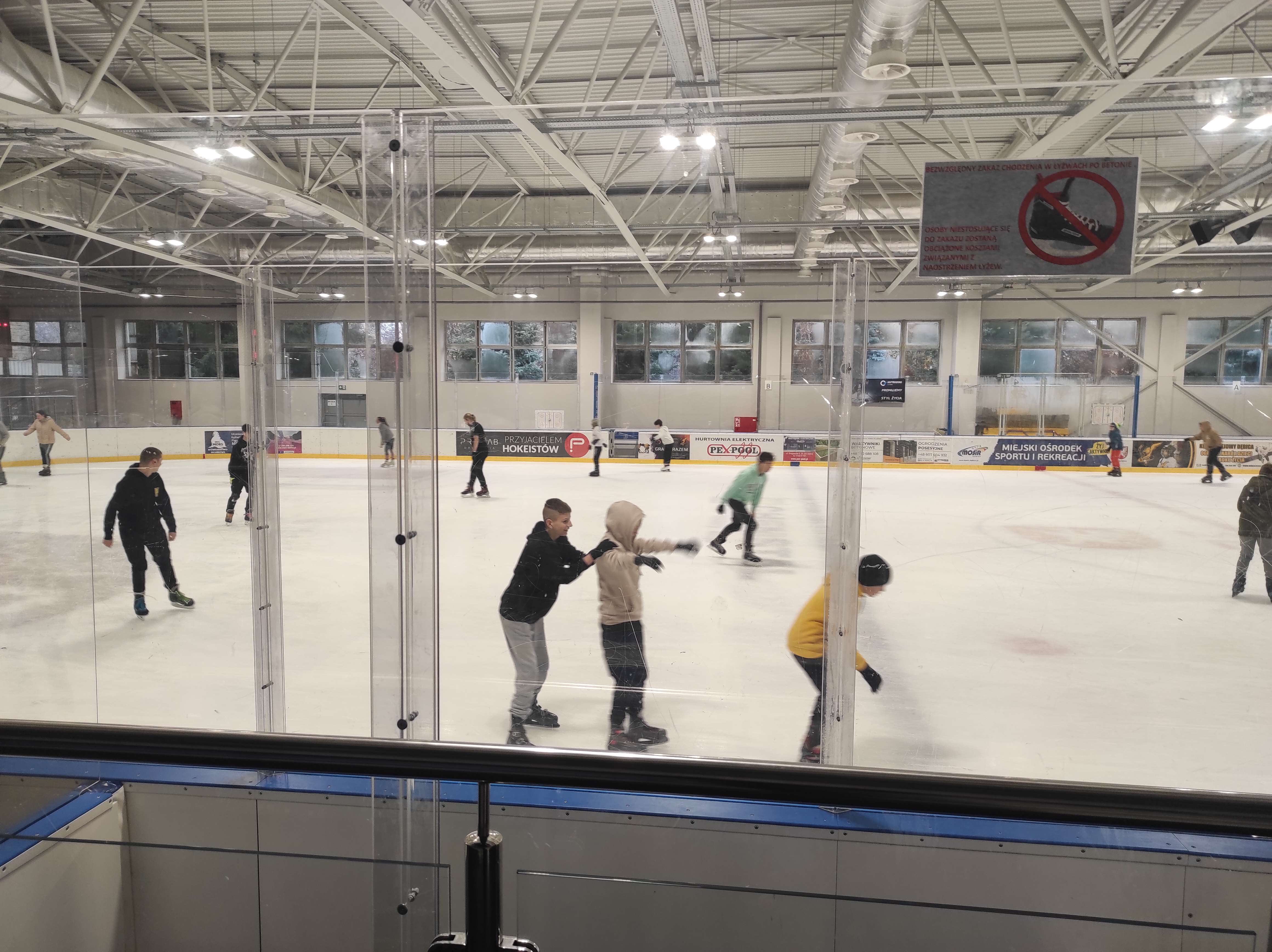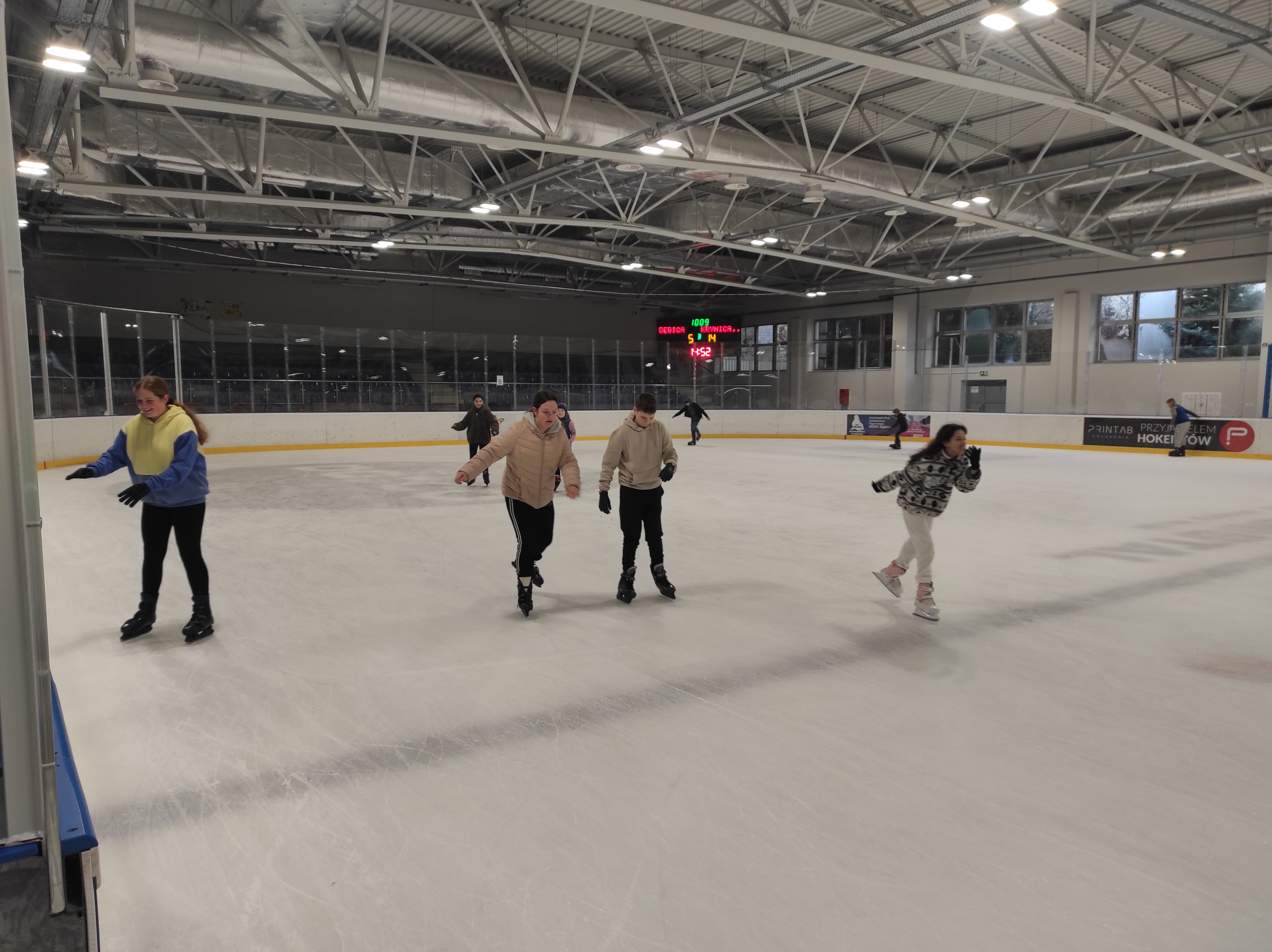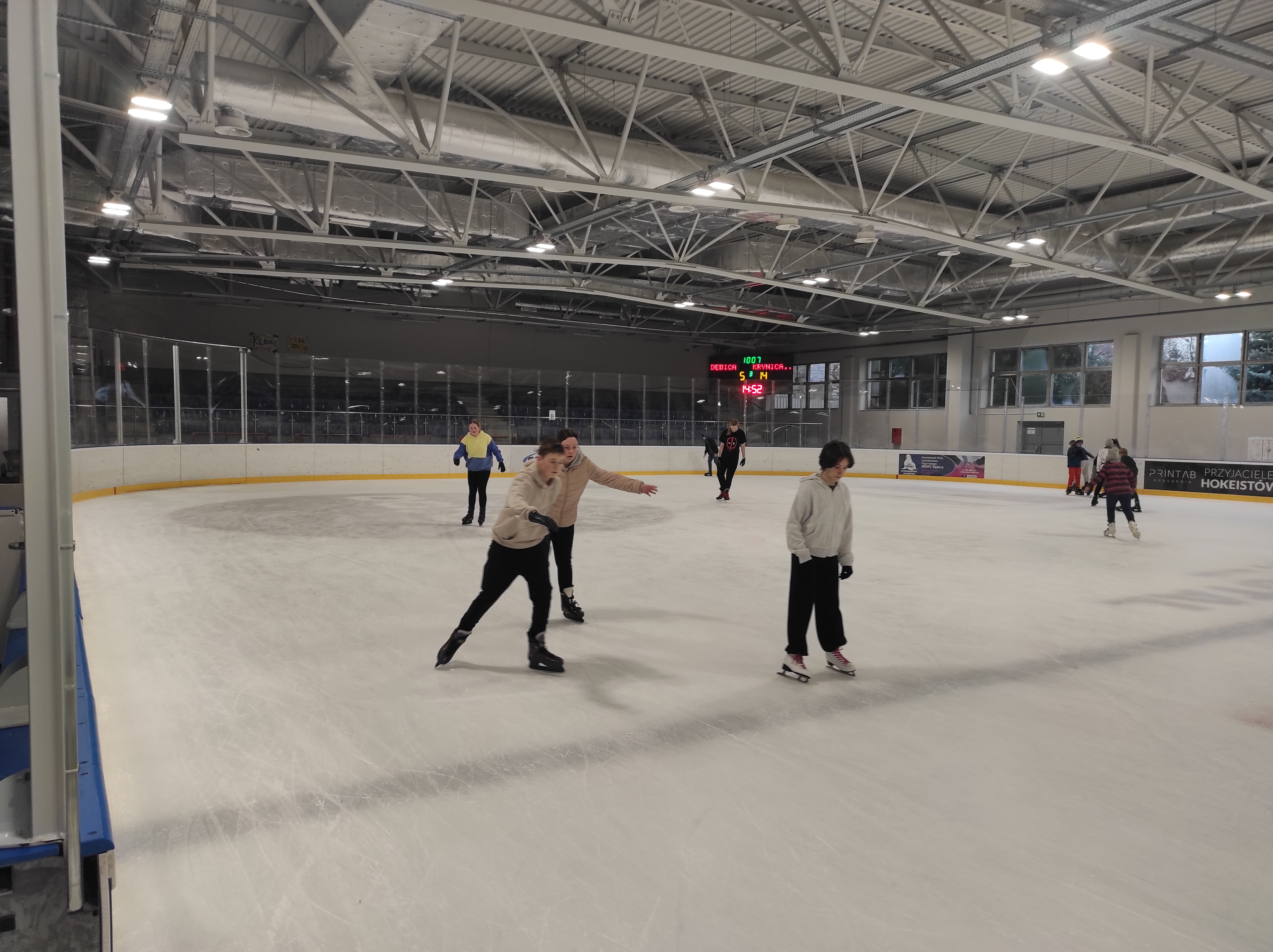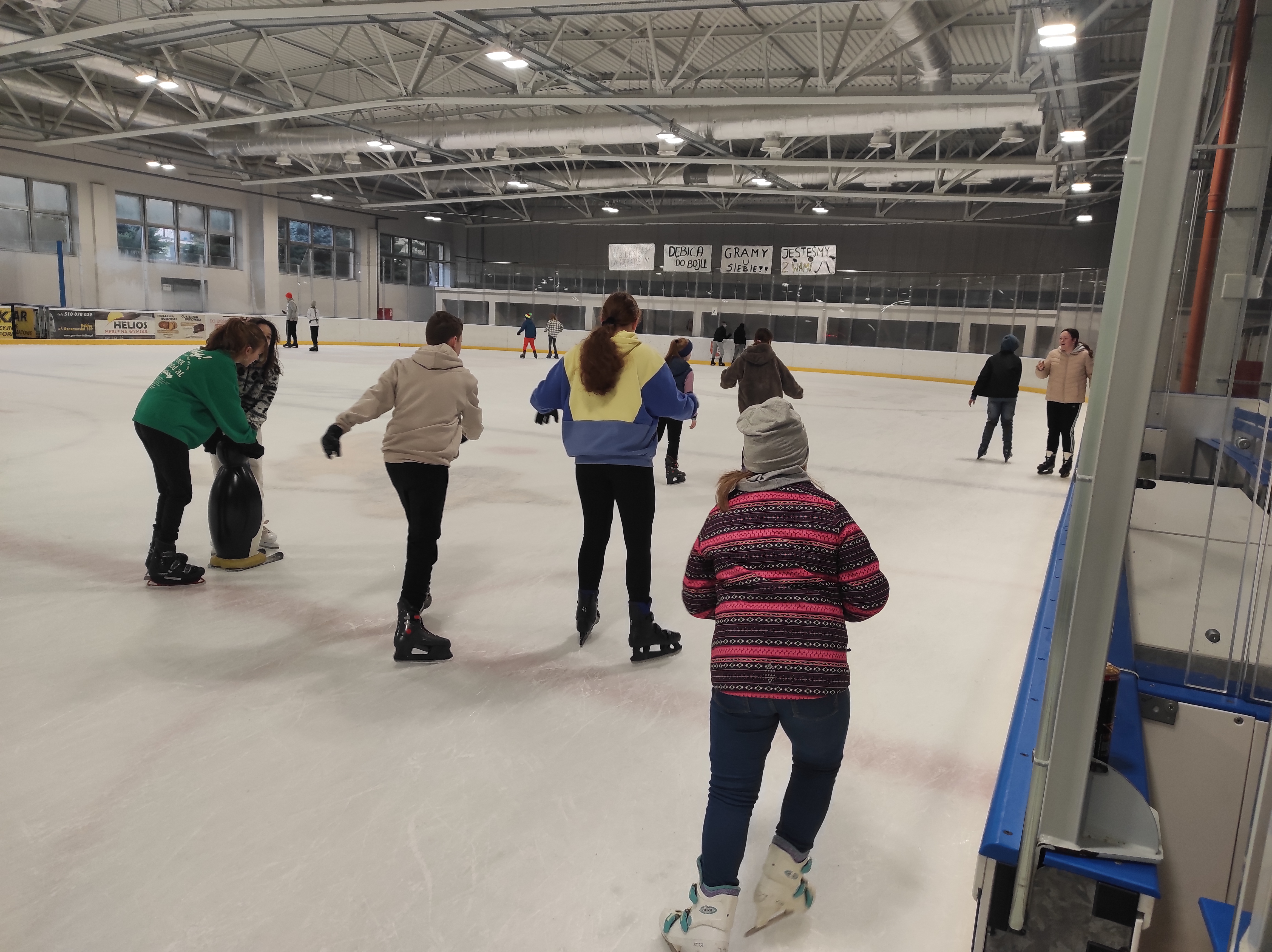 Podobno w zdrowym ciele zdrowy duch, dlatego chętni uczniowie naszej szkoły z opiekunami wybrali się dziś 17.11.2022r. na kryte lodowisko do Dębicy. Wśród ślizgających się byli tacy, którzy świetnie jeździli na łyżwach, ale również początkujący. Zabawa była przednia, dobra muzyka i miłe towarzystwo wynagrodziły nawet upadki na twardy lód. Trafiliśmy na lodowisko w dobrym momencie, gdyż całe było tylko dla nas. Wyjazd bardzo się podobał, wszyscy wracali zmęczeni na pozostałe lekcje do szkoły, ale pełni chęci do pracy.