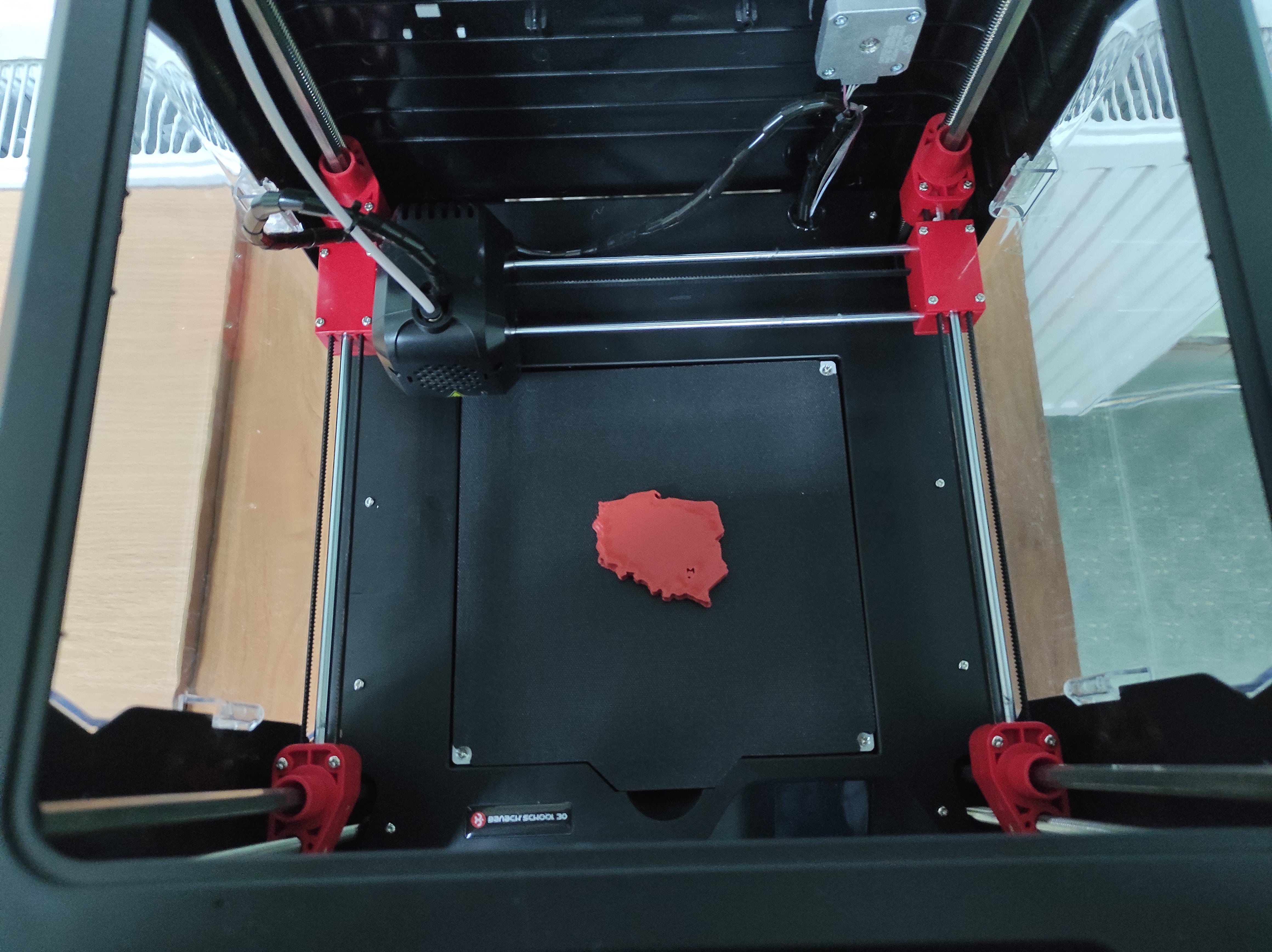 Program Laboratoria Przyszłości przygotowany przez MEiN ma na celu finansowe wsparcie rozwoju infrastruktury szkolnej. Takie podejście Ministerstwa Edukacji i Nauki jest możliwością rozwoju kierunków technicznych oraz budowania umiejętności i kształtowania już najmłodszych uczniów do pracy z zawodach przyszłości. Dzięki finansowaniu z programu Laboratoria Przyszłości do naszej szkoły podstawowej trafił nowy sprzęt między innymi drukarka 3D. Z pomocą programu mamy szansę na rozwój w kierunku nowych technologii. Dziś uczniowie klasy siódmej na lekcji informatyki prowadzonej przez mgr Sławomira Króla przygotowali projekt 3D mapy Polski z zaznaczoną lokalizacją naszej szkoły w Machowej. Po utworzeniu w programie do projektowania 3D, pocieliśmy na warstwy w specjalnym programie dedykowanym do drukarek. Po zapisaniu w odpowiednim kodzie wystarczyło już tylko wykonać wydruk na drukarce otrzymanej z MEN. Wydruk bardzo zainteresował nie tylko uczniów biorących udział w lekcji, ale też młodsze klasy które podczas przerw oglądały trwający ok. 2 godzin powstający obiekt 3D.
