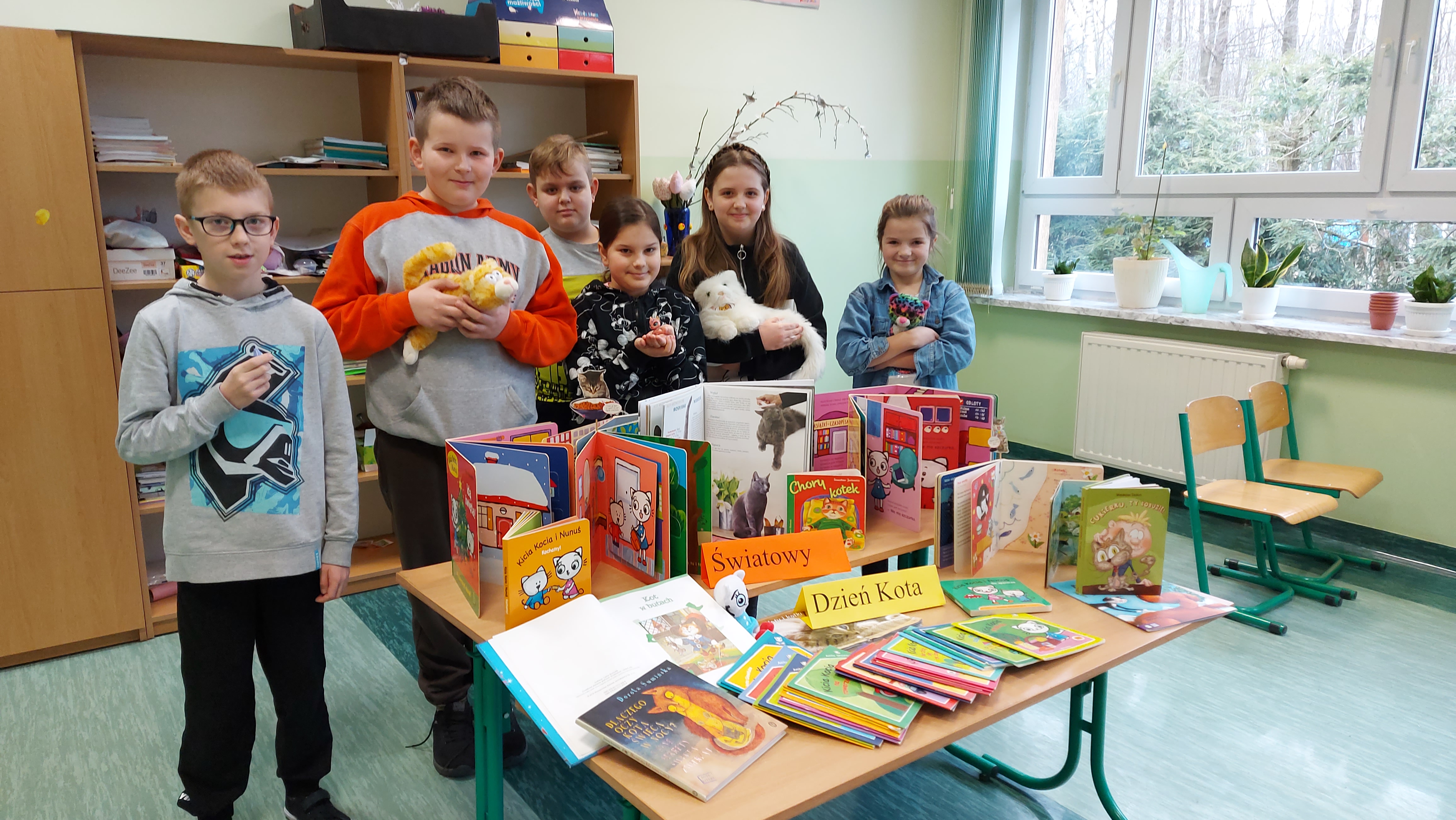 W piątek 17.02.2023r. odbyły się w klasie 3 zajęcia czytelnicze związane ze Światowym Dniem Kota. W trakcie zajęć uczniowie zorganizowali wystawę książek, związanych z postacią kota. Dobrą zabawą było również wymyślanie „Klasowego Kota” i jego opis. Natomiast kotki przytulanki, przyniesione przez dzieci zadbały o przytulną atmosferę na zajęciach.