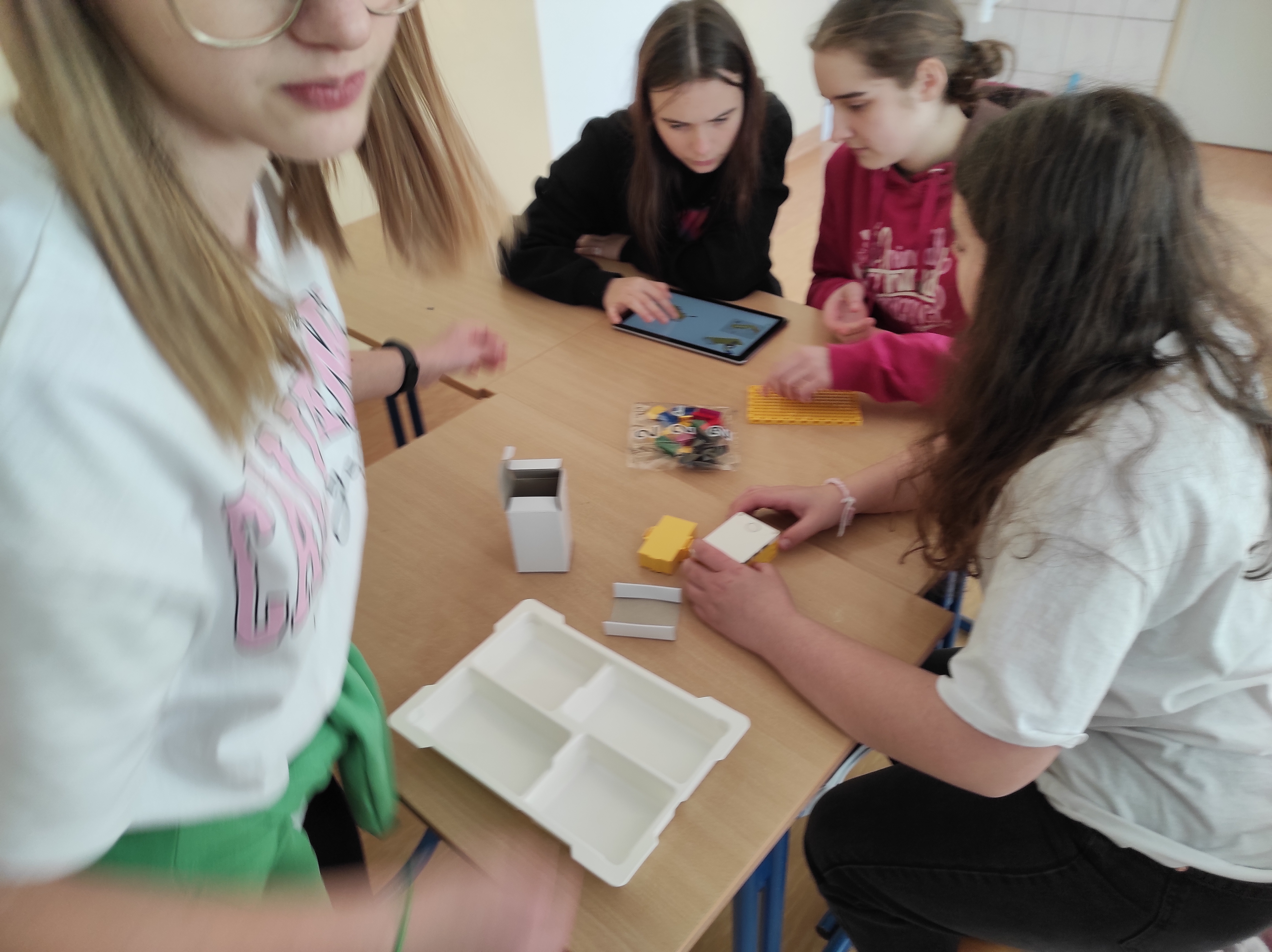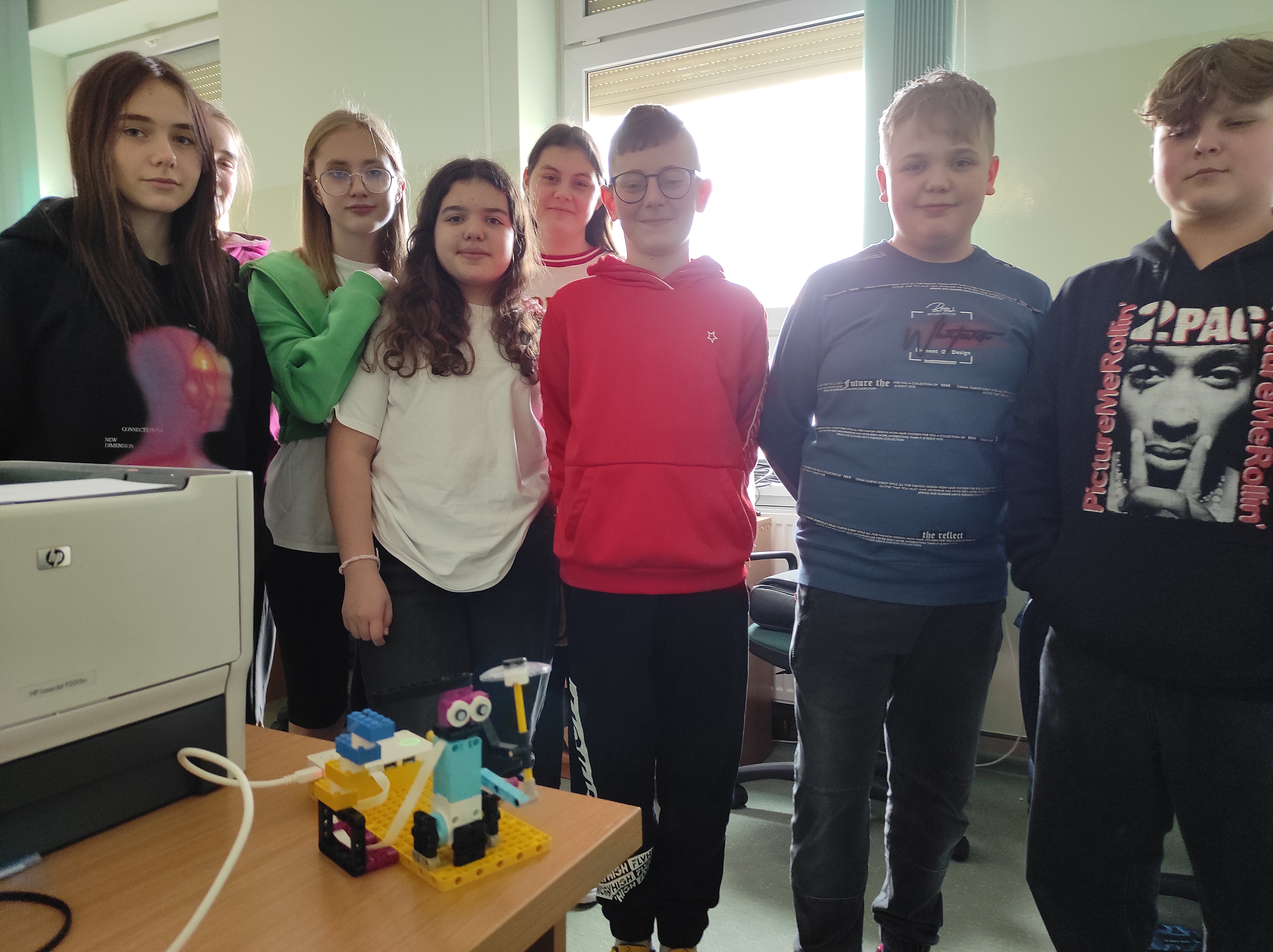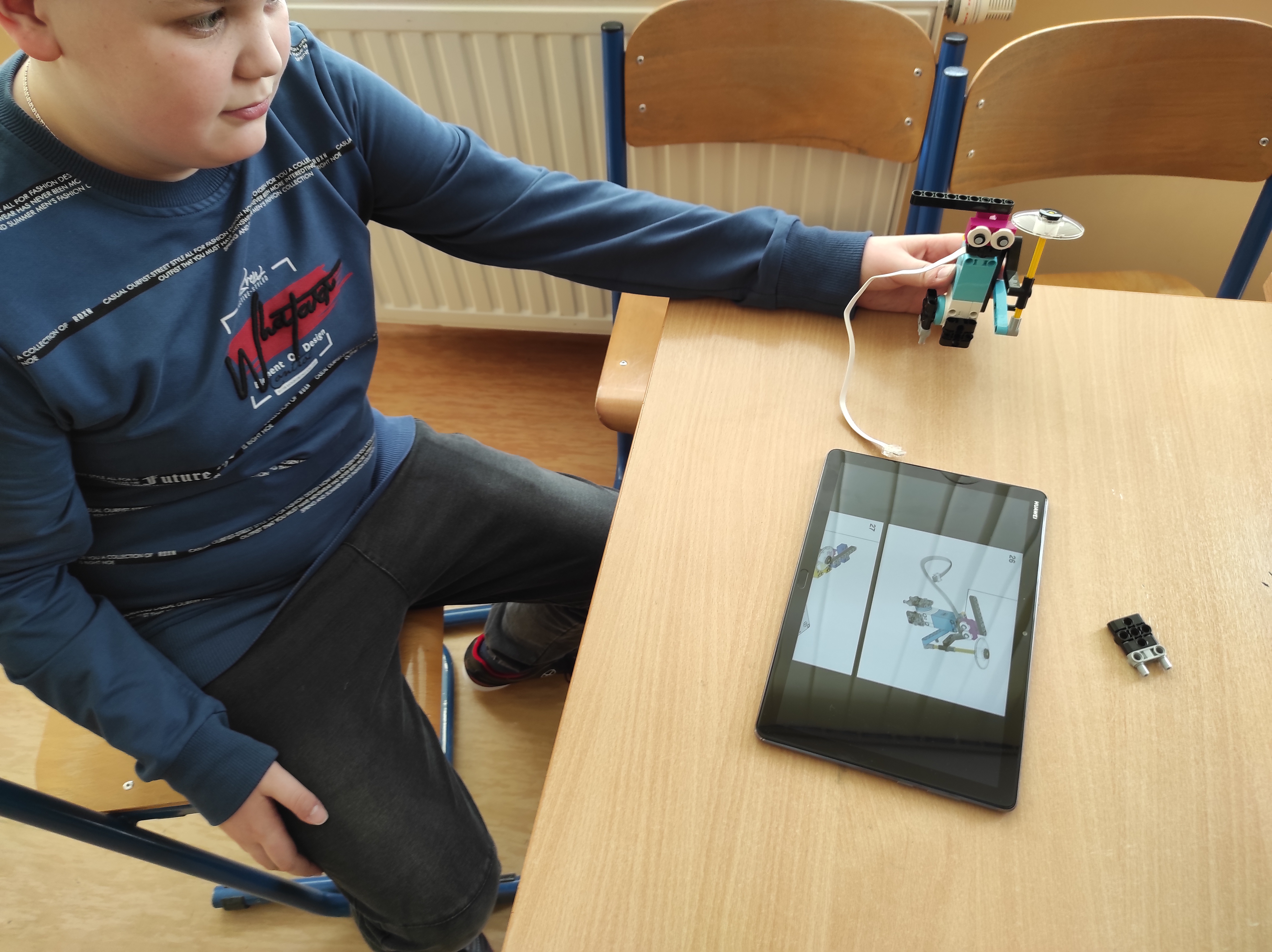 Dziś na zajęciach z programowania/robotyki uczniowie z klasy siódmej pod opieką nauczyciela mgr Sławomira Króla wykorzystali Lego Education Spike Prime, który szkoła otrzymała w ramach projektu Laboratoria przyszłości. Laboratoria Przyszłości to inicjatywa edukacyjna realizowana przez Ministerstwo Edukacji i Nauki we współpracy z Centrum GovTech w Kancelarii Prezesa Rady Ministrów. Misją jest stworzenie nowoczesnej szkoły, w której zajęcia będą prowadzone w sposób ciekawy, angażujący uczniów oraz sprzyjający odkrywaniu ich talentów i rozwijaniu zainteresowań. Dzięki pracy z zestawem uczniowie rozwijali kompetencje społeczne, takie jak komunikacja i współpraca w grupie, w tym w środowiskach wirtualnych, udział w projektach zespołowych oraz zarządzanie projektami, analizowali i rozwiązywali problemy na bazie logicznego i abstrakcyjnego myślenia, myślenia algorytmicznego i sposobów reprezentowania informacji. Ćwiczyli wymagania ogólne z informatyki takie jak programowanie i rozwiązywanie problemów z wykorzystaniem komputera oraz innych urządzeń cyfrowych: układanie i programowanie algorytmów, organizowanie, wyszukiwanie i udostępnianie informacji, posługiwanie się aplikacjami komputerowymi zostało opanowane. Zajęcia zdaniem uczniów były bardzo ciekawe. Relacja z dzisiejszych zajęć na zdjęciach poniżej.