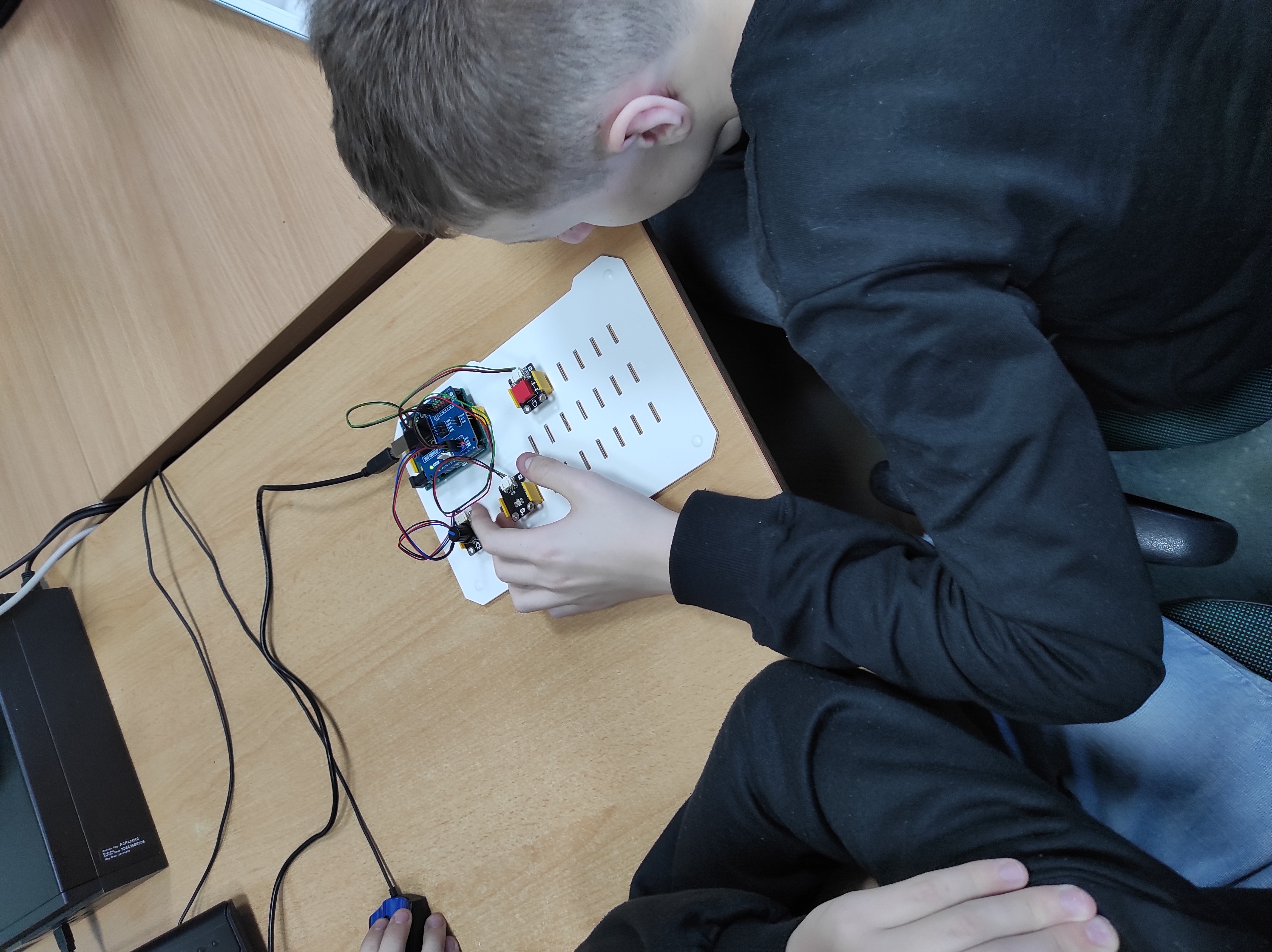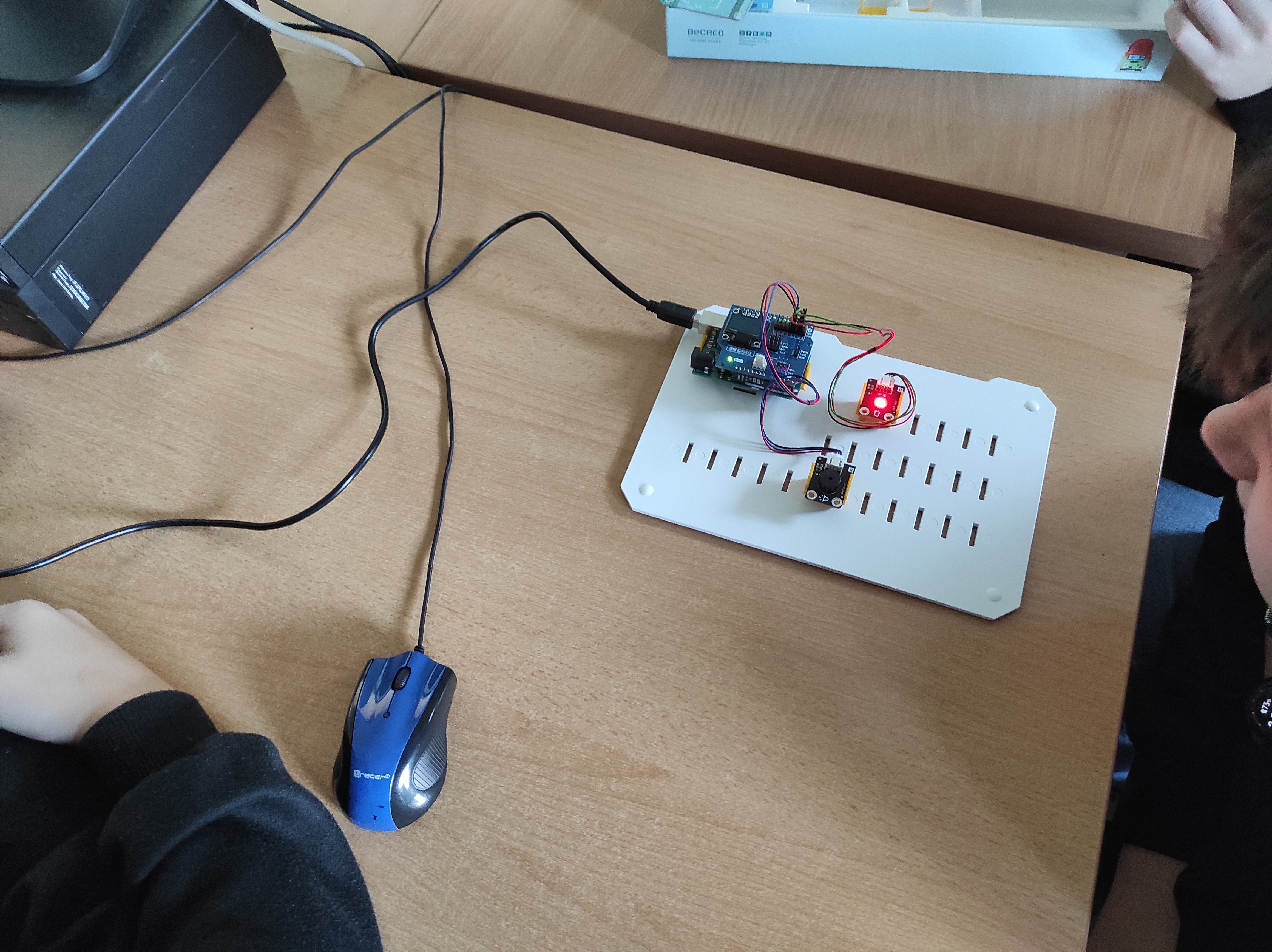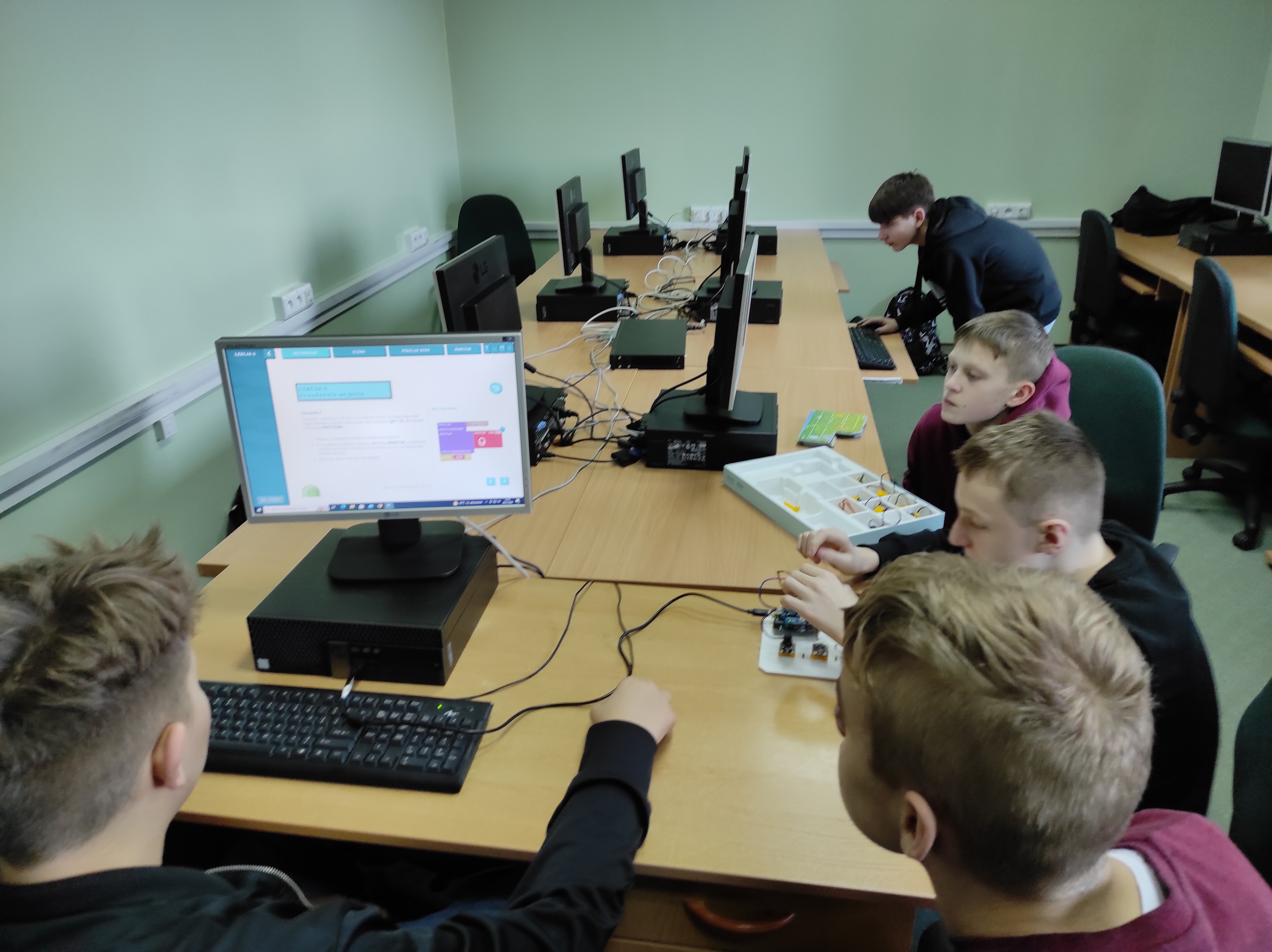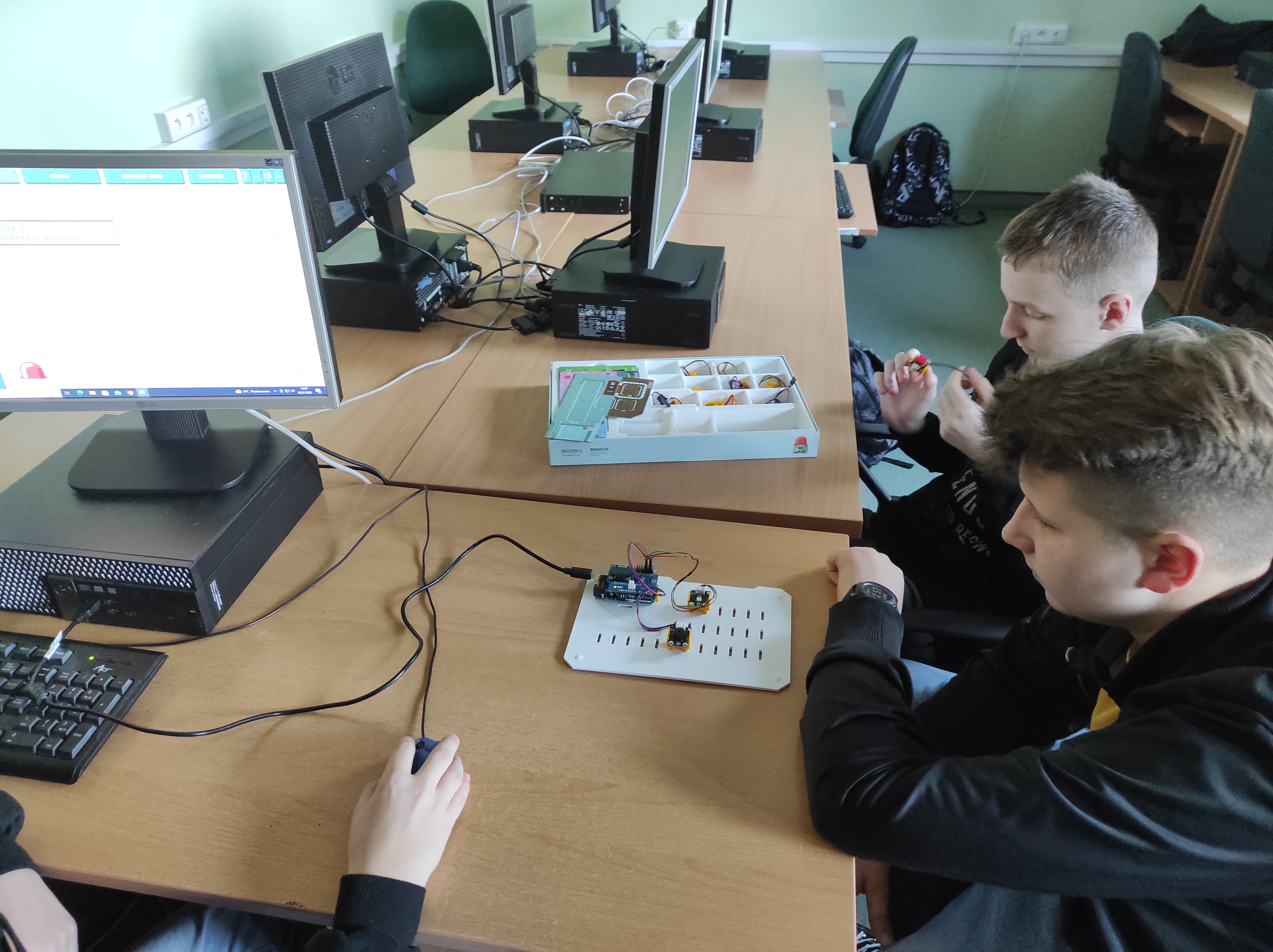 Dziś na zajęciach z programowania chłopcy z klasy szóstej wykorzystali sprzęt BeCreo – zestaw z mikrokontrolerem, który otrzymaliśmy w ramach projektu Laboratoria przyszłości. Laboratoria Przyszłości to inicjatywa edukacyjna realizowana przez Ministerstwo Edukacji i Nauki we współpracy z Centrum GovTech w Kancelarii Prezesa Rady Ministrów. Misją jest stworzenie nowoczesnej szkoły, w której zajęcia będą prowadzone w sposób ciekawy, angażujący uczniów oraz sprzyjający odkrywaniu ich talentów i rozwijaniu zainteresowań. Uczniowie rozpoczęli swoją przygodę z konstruowaniem i mechatroniką, połączyli ze wcześniejszą wiedzą zdobytą na lekcjach programowania, które już od kilku lat prowadzone są w naszej szkole przez Sławomira Króla – nauczyciela matematyki, informatyki – propagującego nauczanie programowania w naszej szkole. Na początku wybraliśmy projekt, wybraliśmy potrzebne moduły elektroniczne i czujniki, podłączyliśmy moduły, aby zbudować system rozwiązujący zadanie. Następnie napisaliśmy program, który kontrolował podłączone moduły i na koniec zostało wysłanie programu do mikrokontrolera i sprawdziliśmy, czy nasz projekt działa. Relacja z dzisiejszych zajęć na zdjęciach poniżej.