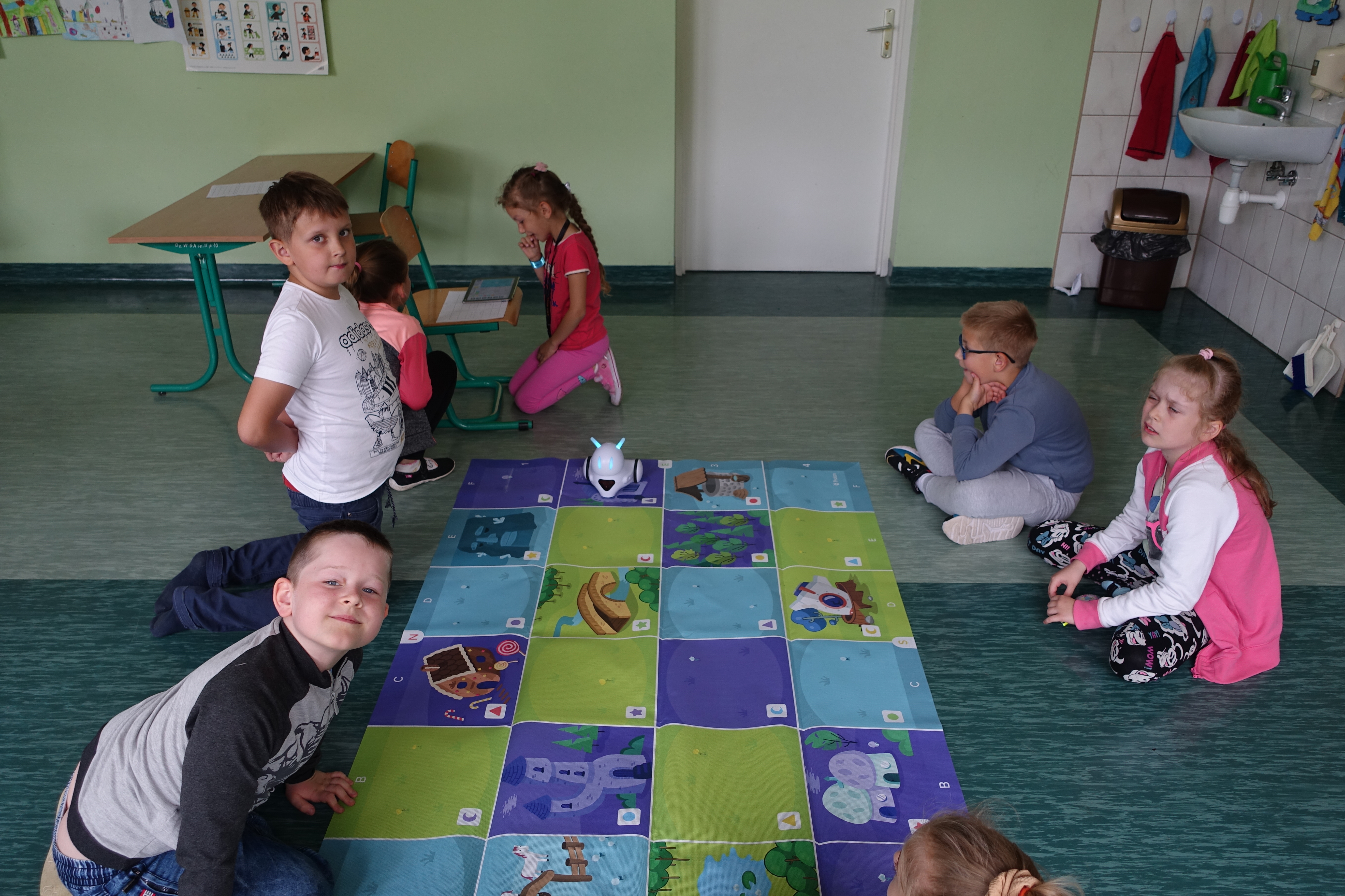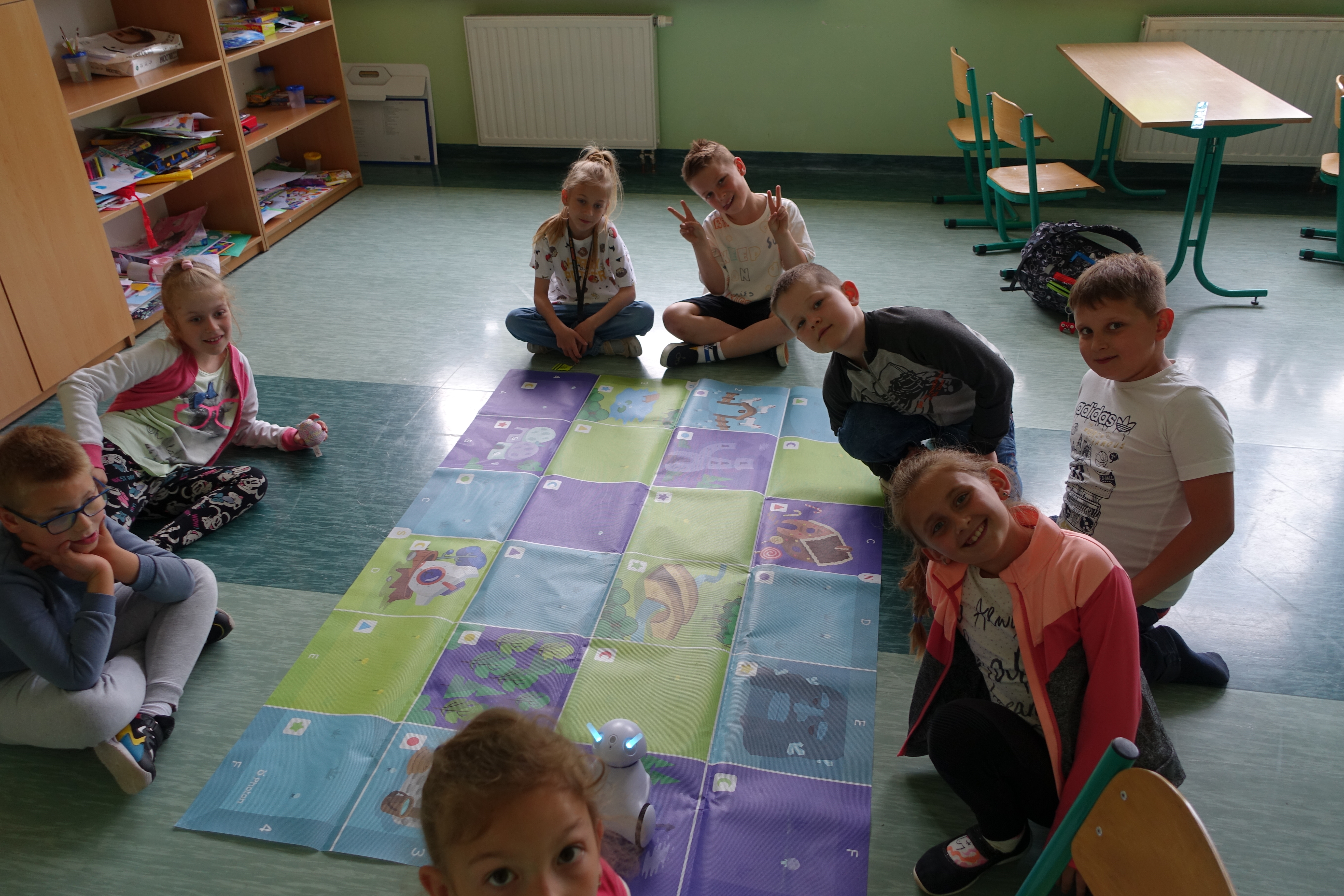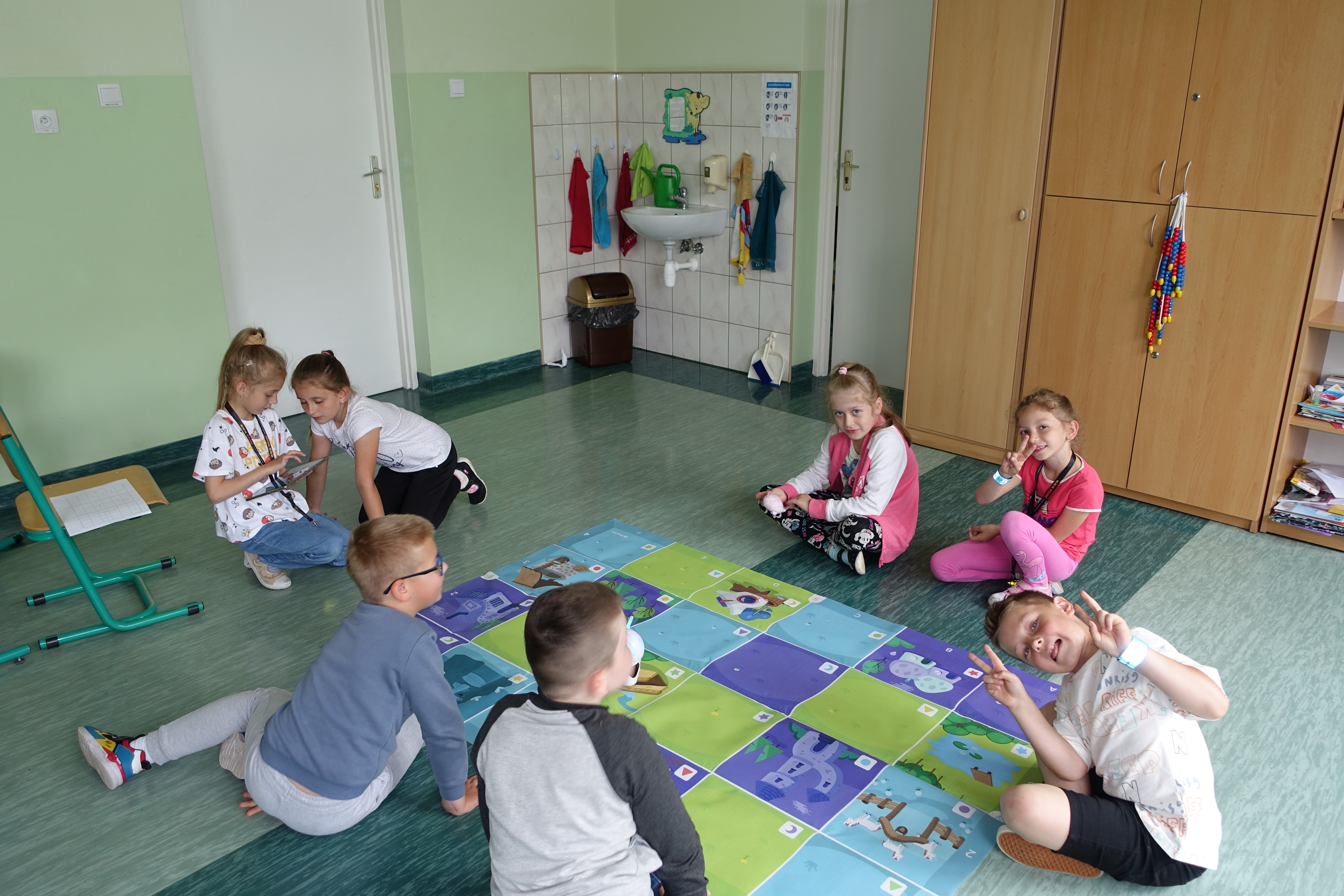 Dziś na zajęciach (16.06.2023) z edukacji informatycznej w klasie pierwszej na zajęciach poświęconych programowaniu uczniowie wraz z nauczycielem mgr Sławomirem Królem ćwiczyli treści zawarte w podstawie programowej rozwiązywanie zagadek logicznych, tworzenie algorytmu drogi robota Photona za pomocą strzałek oraz symboli, programowali Photona. Zajęcia były atrakcyjne dzięki zakupionemu w ramach programu „Laboratoria przyszłości” m. in. Robota Photon z mata edukacyjną. Laboratoria Przyszłości to inicjatywa edukacyjna realizowana przez Ministerstwo Edukacji i Nauki we współpracy z Centrum GovTech w Kancelarii Prezesa Rady Ministrów. Poniżej fotorelacja z zajęć wykonana przy pomocy aparatu fotograficznego, też otrzymanego w ramach projektu „Laboratoria przyszłości”.