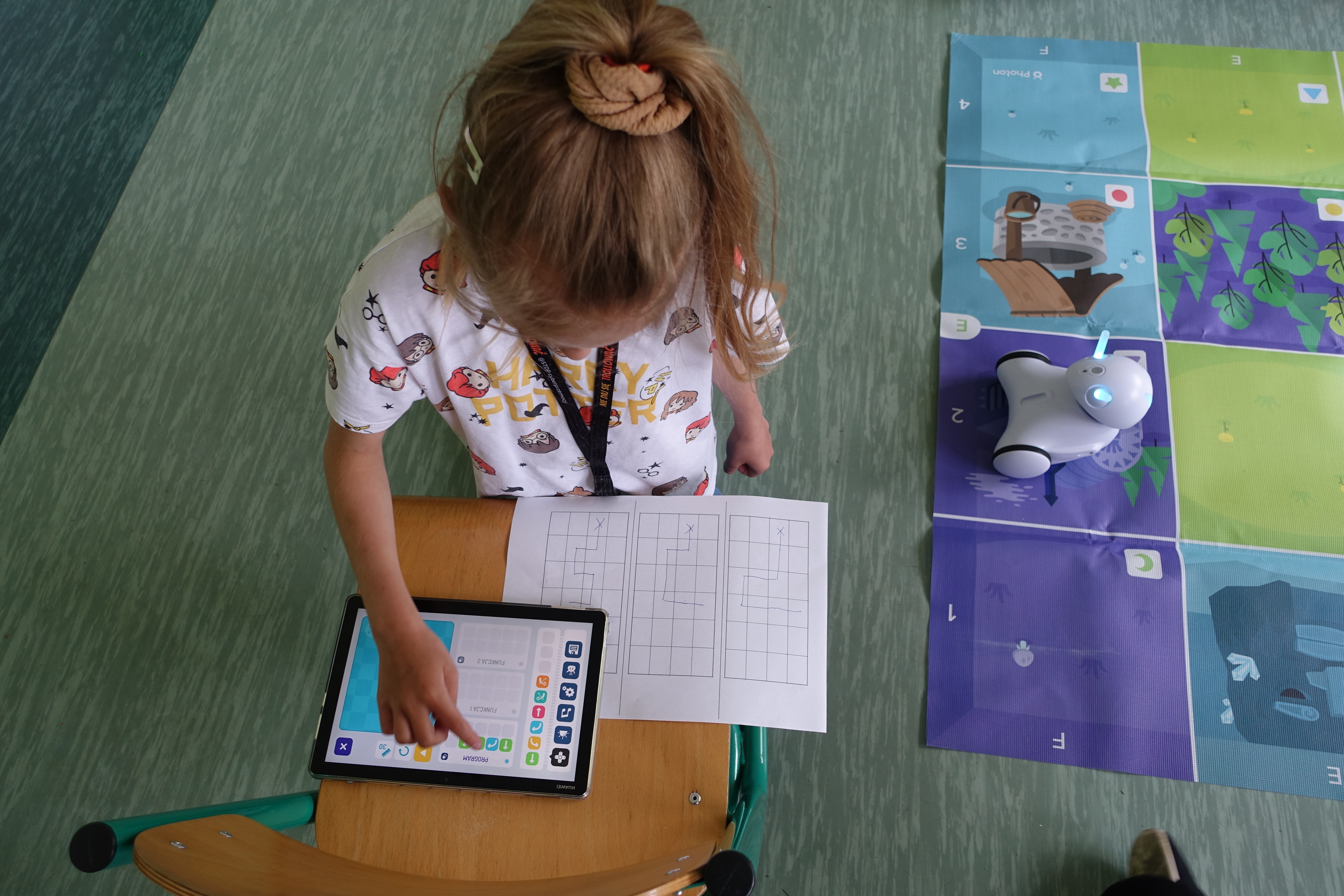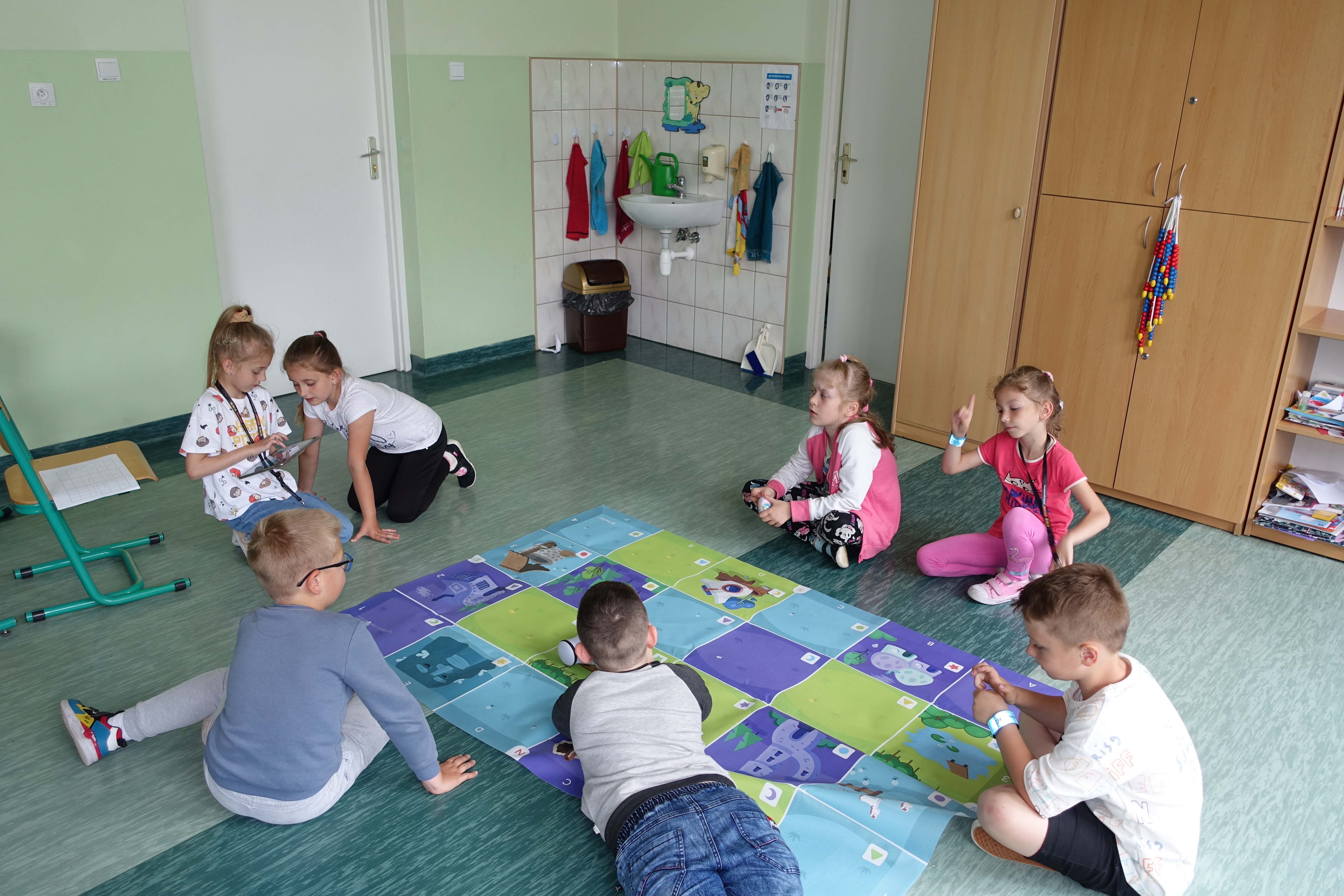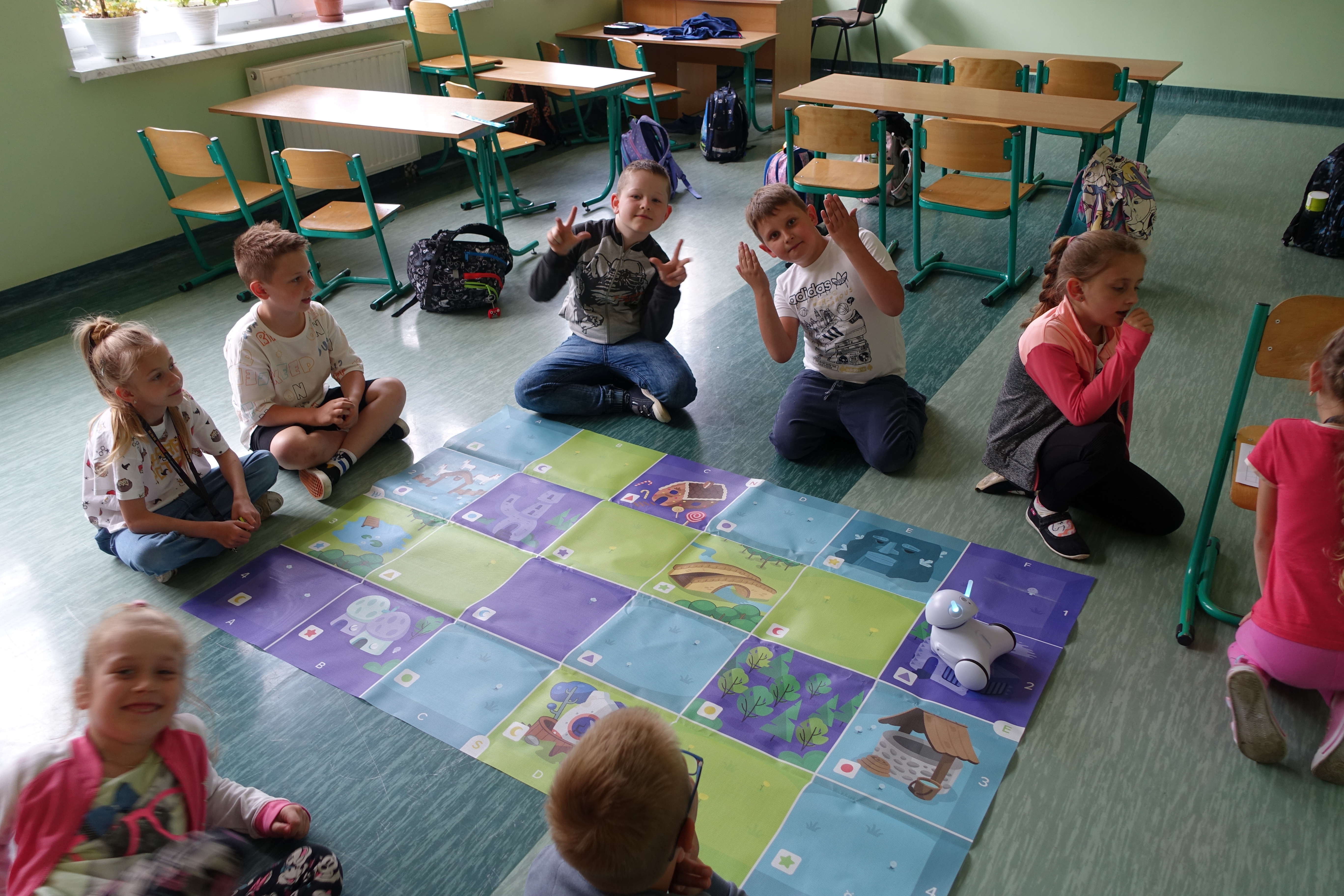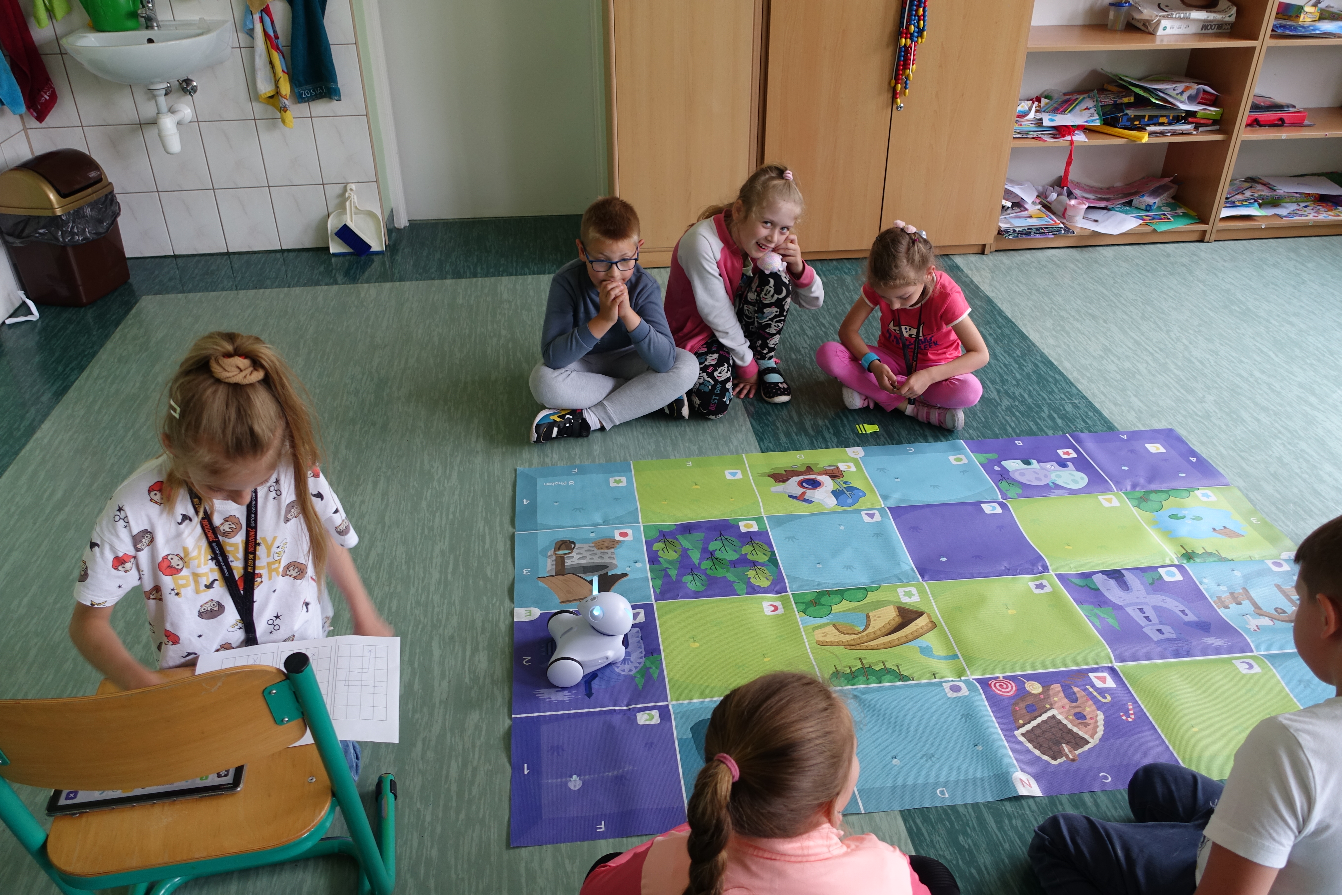 Dziś na zajęciach (16.06.2023) z edukacji informatycznej w klasie pierwszej na zajęciach poświęconych programowaniu uczniowie wraz z nauczycielem mgr Sławomirem Królem ćwiczyli treści zawarte w podstawie programowej rozwiązywanie zagadek logicznych, tworzenie algorytmu drogi robota Photona za pomocą strzałek oraz symboli, programowali Photona. Zajęcia były atrakcyjne dzięki zakupionemu w ramach programu „Laboratoria przyszłości” m. in. Robota Photon z mata edukacyjną. Laboratoria Przyszłości to inicjatywa edukacyjna realizowana przez Ministerstwo Edukacji i Nauki we współpracy z Centrum GovTech w Kancelarii Prezesa Rady Ministrów. Poniżej fotorelacja z zajęć wykonana przy pomocy aparatu fotograficznego, też otrzymanego w ramach projektu „Laboratoria przyszłości”.
